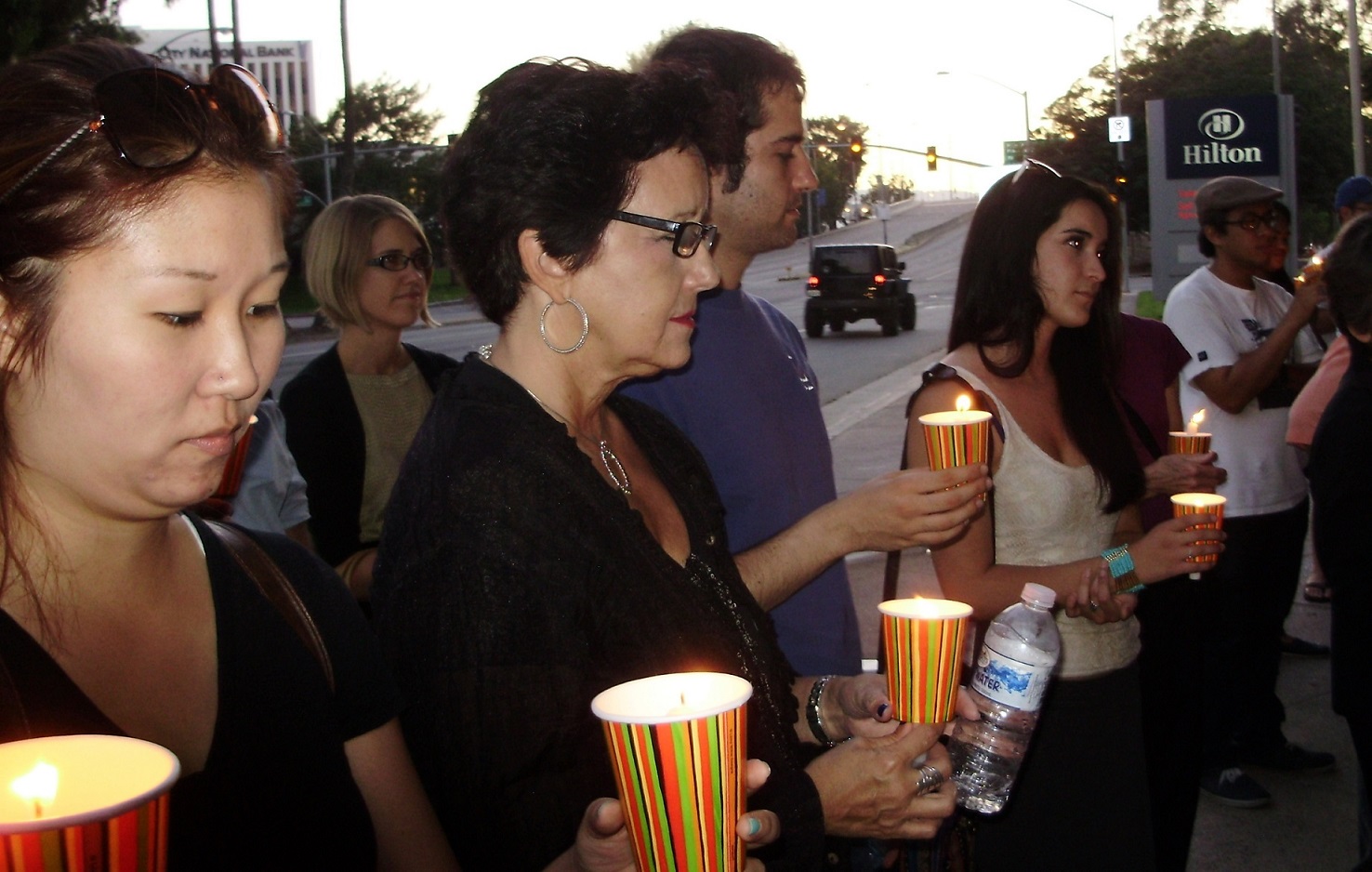About 60 people, mostly supporters of the Long Beach Coalition for Good Jobs and a Healthy Community, held a candlelight vigil, on Saturday, Aug. 17 outside the Long Beach Hilton to protest the treatment of the hotel’s workers.