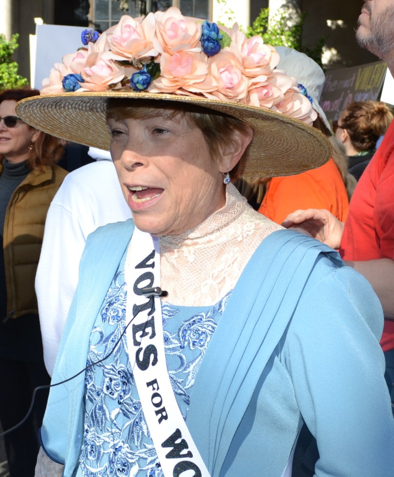 Emmilene Pankhurst at Los Angeles Women’s March, Saturday, Jan. 21, on Olive St., outside of Pershing Square.