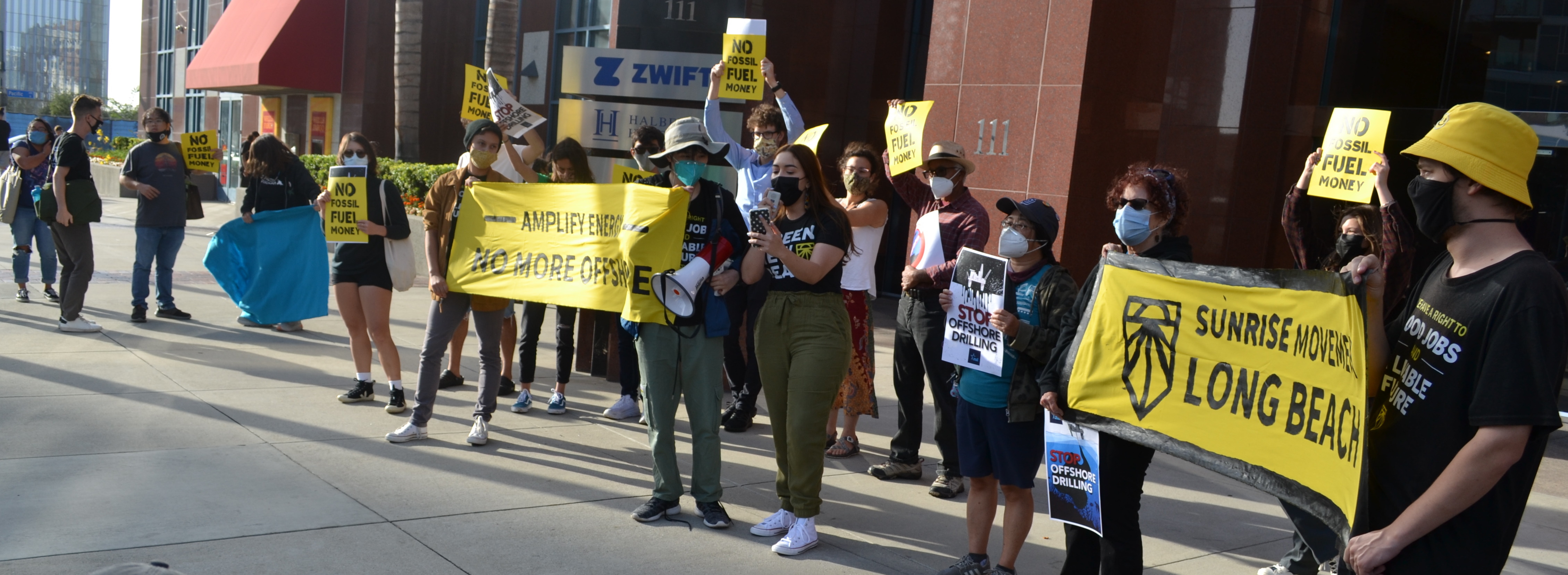 About 100 people, on Monday, Oct. 11., mostly Sunrise Movement youth activists, rallied outside of the Wells Fargo Bank Building in Long Beach to demand “an END (sic) to offshore drilling, according to a Sunrise Movement Orange County webpage event announcement, while inside the building were the offices of Beta Offshore, the firm that ran the failed pipeline, causing, the oil spill, in early October off Huntington Beach in Orange County.
