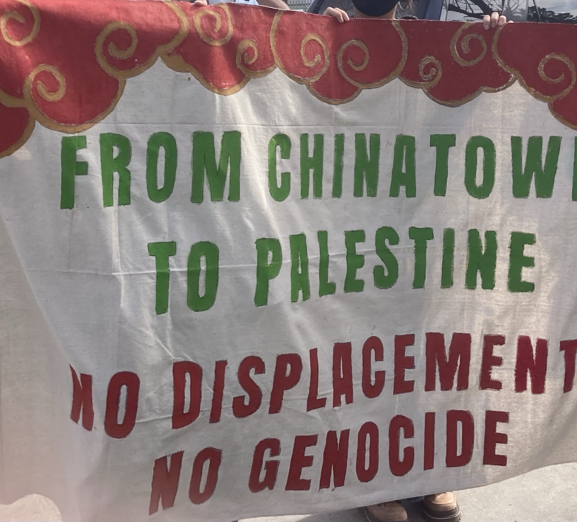 A local tenant, who was also a Vietnamese refugee, spoke. He said he was there to stand with Palestine and that he opposed American support for Israel. He said the money instead should be used to benefit the people of Chinatown. He also called for a citywide moratorium on evictions. He recounted when he was a teenager in Vietnam the devastation of forests because the use of napalm and Agent Orange by the United States.