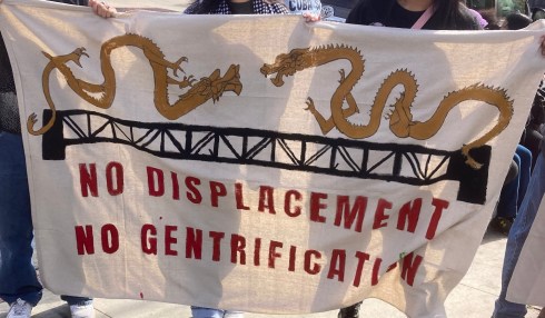 About 200 hundred Asians with their allies, on Saturday, Feb. 8, gathered at the Alpine Recreation Center, 817 Alpine St., in Chinatown, Los Angeles, where they chanted and heard speeches and music, in solidarity with Palestine and the local housing struggles against landlords, before marching to Los Angeles City Hall.