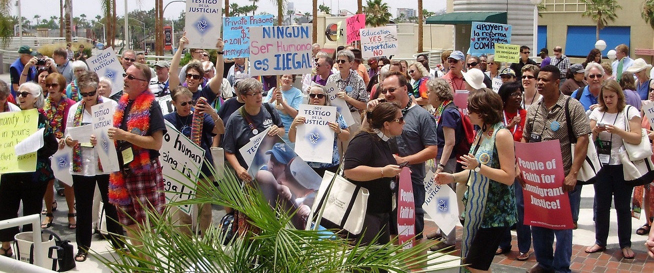 Sprinkled among the crowd were some hotel workers and UNITE HERE Local 11 staff wearing red tee-shirts.